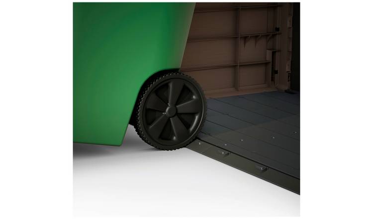 Designed for ultimate convenience, the Store It Out Midi features built-in ventilation to keep contents fresh, a smart sloped floor to prevent water and mud ingress, and integrated support for adding your own shelf, maximizing your storage potential. Access your belongings with ease through the convenient top or front openings, secured by a practical step-on lock. This versatile box can even accommodate two 120L bins, making it perfect for managing household waste or storing large garden essentials.